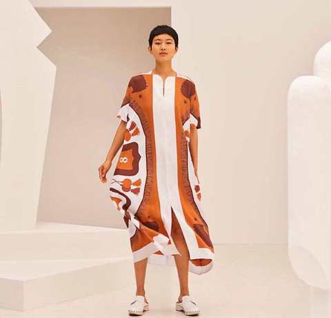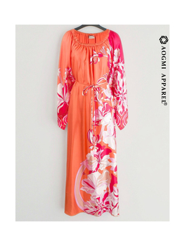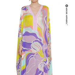 2021プリントゴーズシルク & コットンカフタンドレス