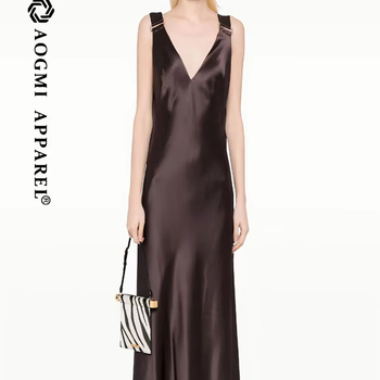 여성용 고급 맞춤 캐주얼 바닥 길이 민소매 V-넥 태피터 원피스 조절 가능한 얇은 밴드 배 제어 친환경