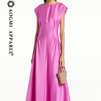 เดรสแม็กซี่เดรสลำลองหรูหราระดับไฮเอนด์ไม่มีปกคอเสื้อทรงตรง100% ผ้าไหมผ้าแพรแข็งระบายอากาศได้ดี