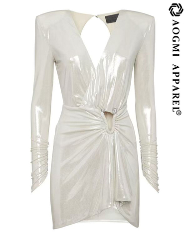 ชุดเดรสแฟชั่นแขนยาวคอวีของผู้หญิงชุดเดรสออกงานกลางคืนหรูหรา